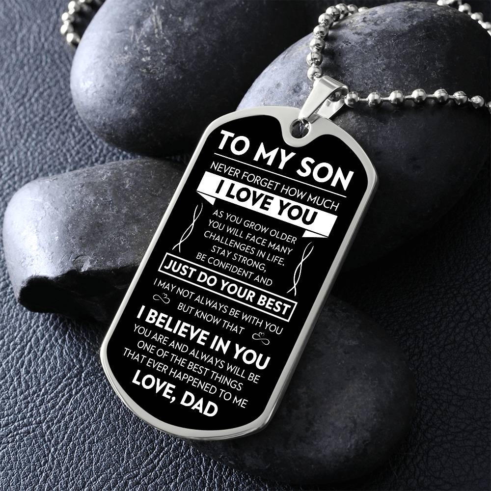 To My Son "Never Forget" Dog Tag - Military Ball Chain